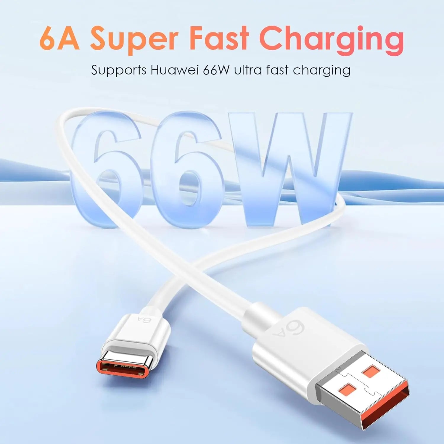 6A 66W Super Fast Charger Type C Cable for Huawei Mate 40 50 60 P50 P60 Nova 8 9 10 Honor 50 70 90 100 200 Lite X7 X8 X9 Magic 5