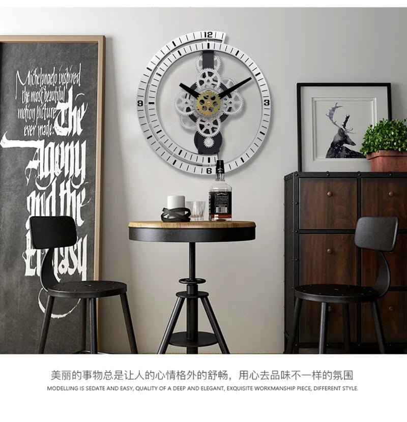 Industrial Gear Rotating Wall Clock, Silent Clock, Modern Design,Home Living Room,European Office Art Wall Decoration Horologe
