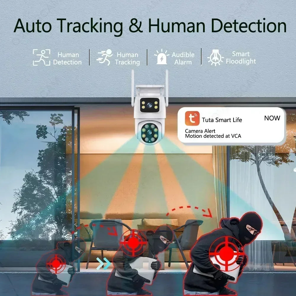 Smart Life 4K Wifi Solar PTZ Security Camera Dual Lens Outdoor Auto Tracking Wirelesss CCTV Video Surveillance Camera Tuya 8MP