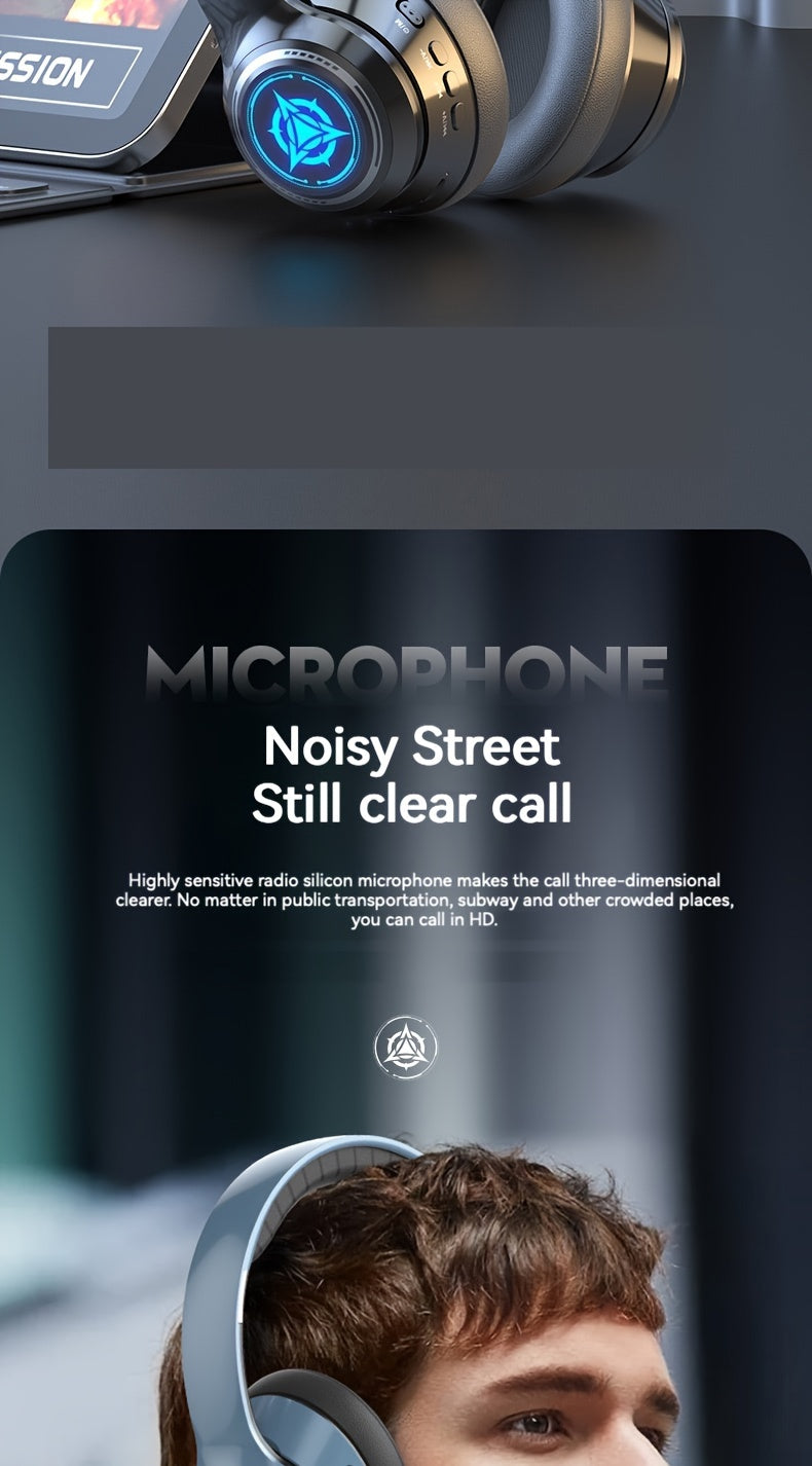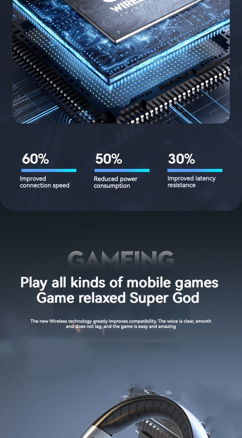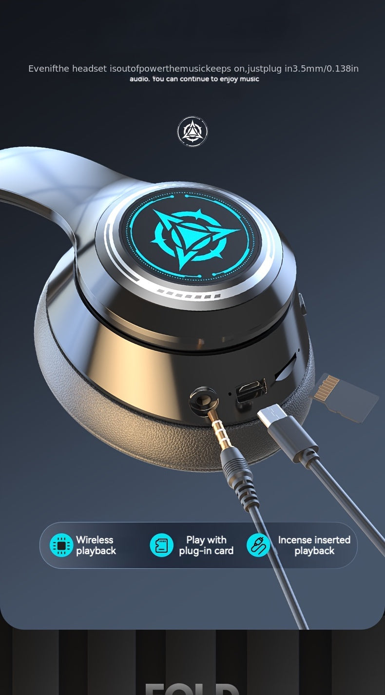 Wireless Gaming Headphones with Noise Reduction and Ambient Lighting Retractable and Foldable Wireless Earbuds