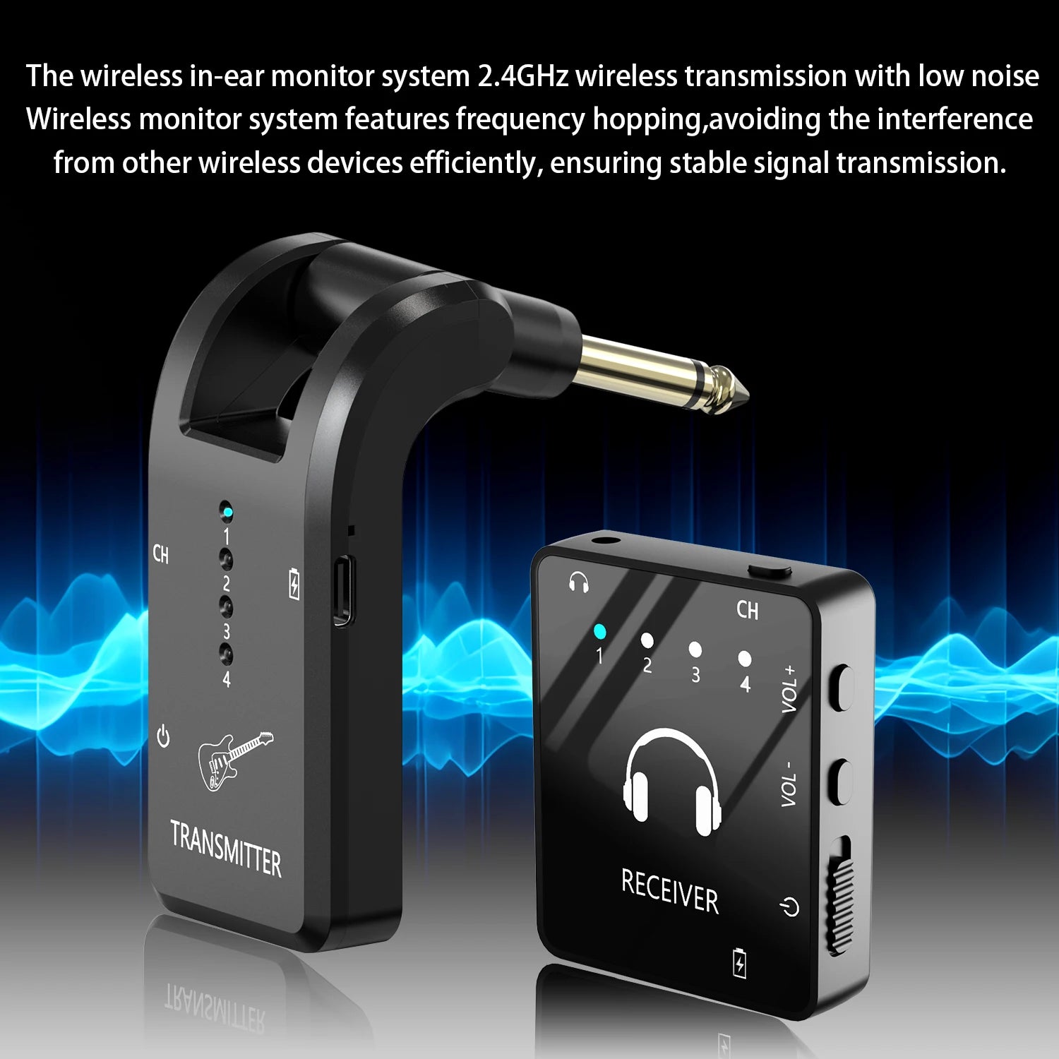 Wireless in ear monitoring system, 2.4GHz Wireless IEM system with transmitter and lavalier receiver, for band rehearsal